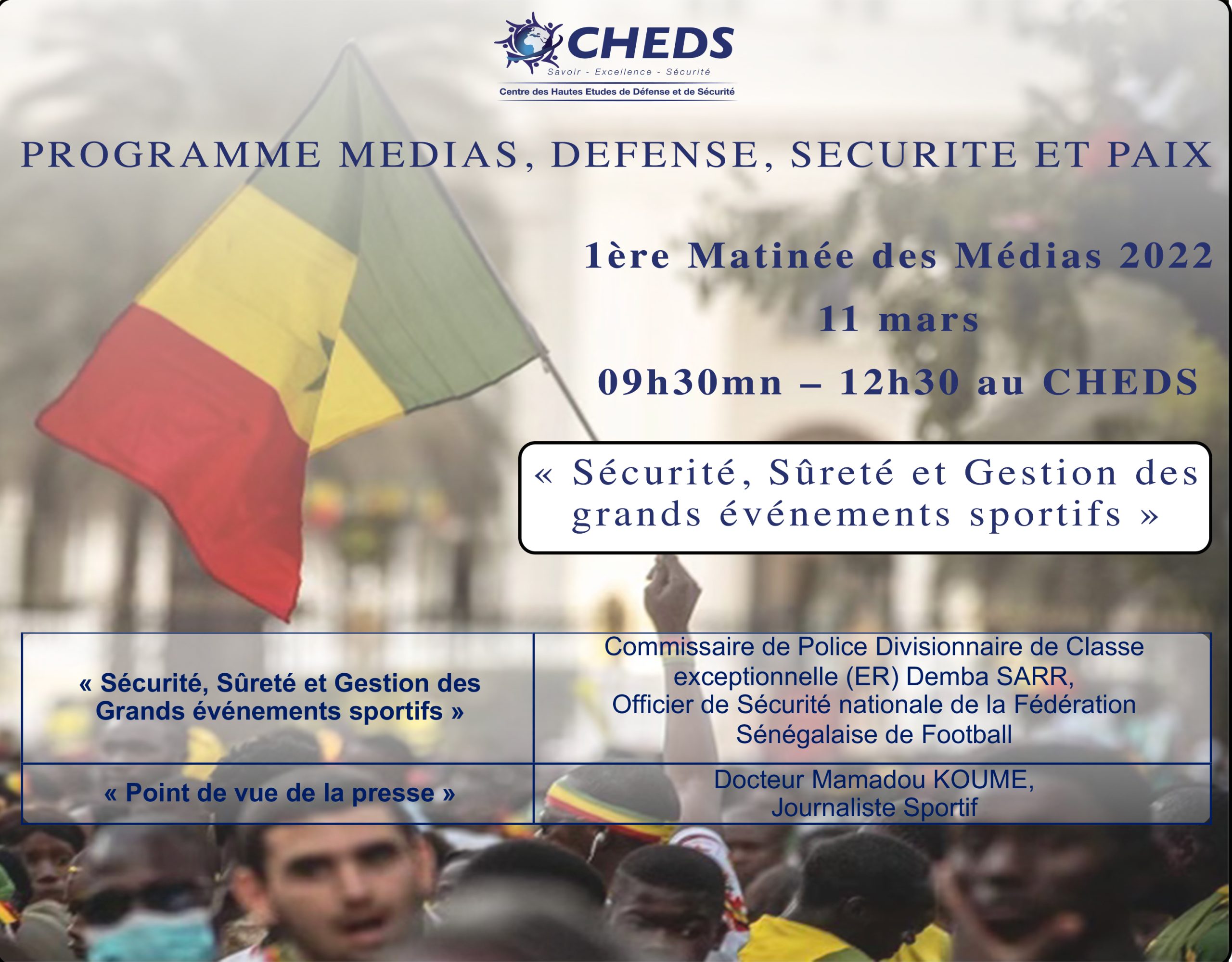 CHEDS2022-03-14T10:59:41+00:00Ce vendredi 11 mars marquait la 1ère Matinée des Médias 2022 du CHEDS sur le thème : « Sécurité, sûreté et gestion des grands événements sportifs ».